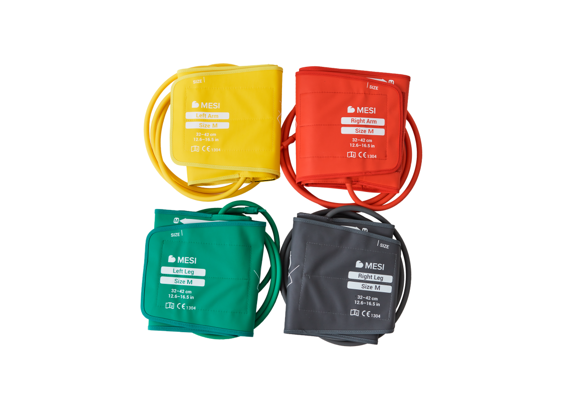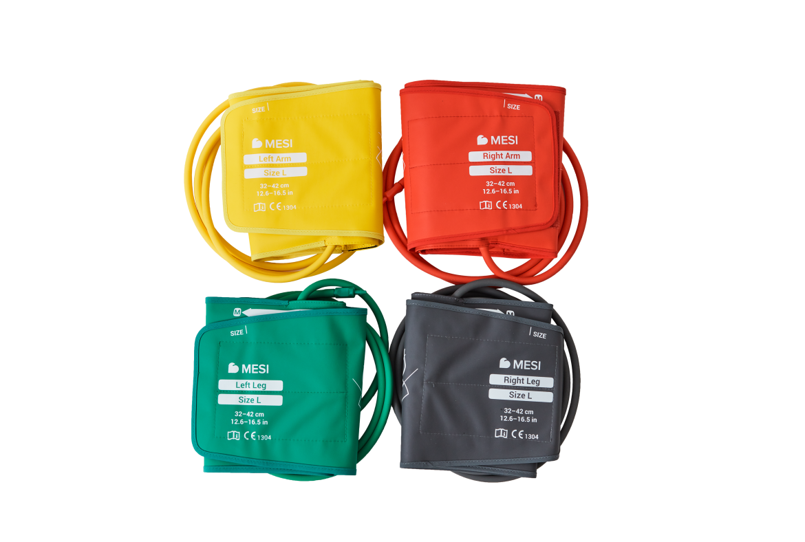 Sada veľkých manžiet pre MESI ABPI MD2 zabezpečujúca dokonalé obopnutie končatín pacienta, čím sa zabezpečí vysoká presnosť.