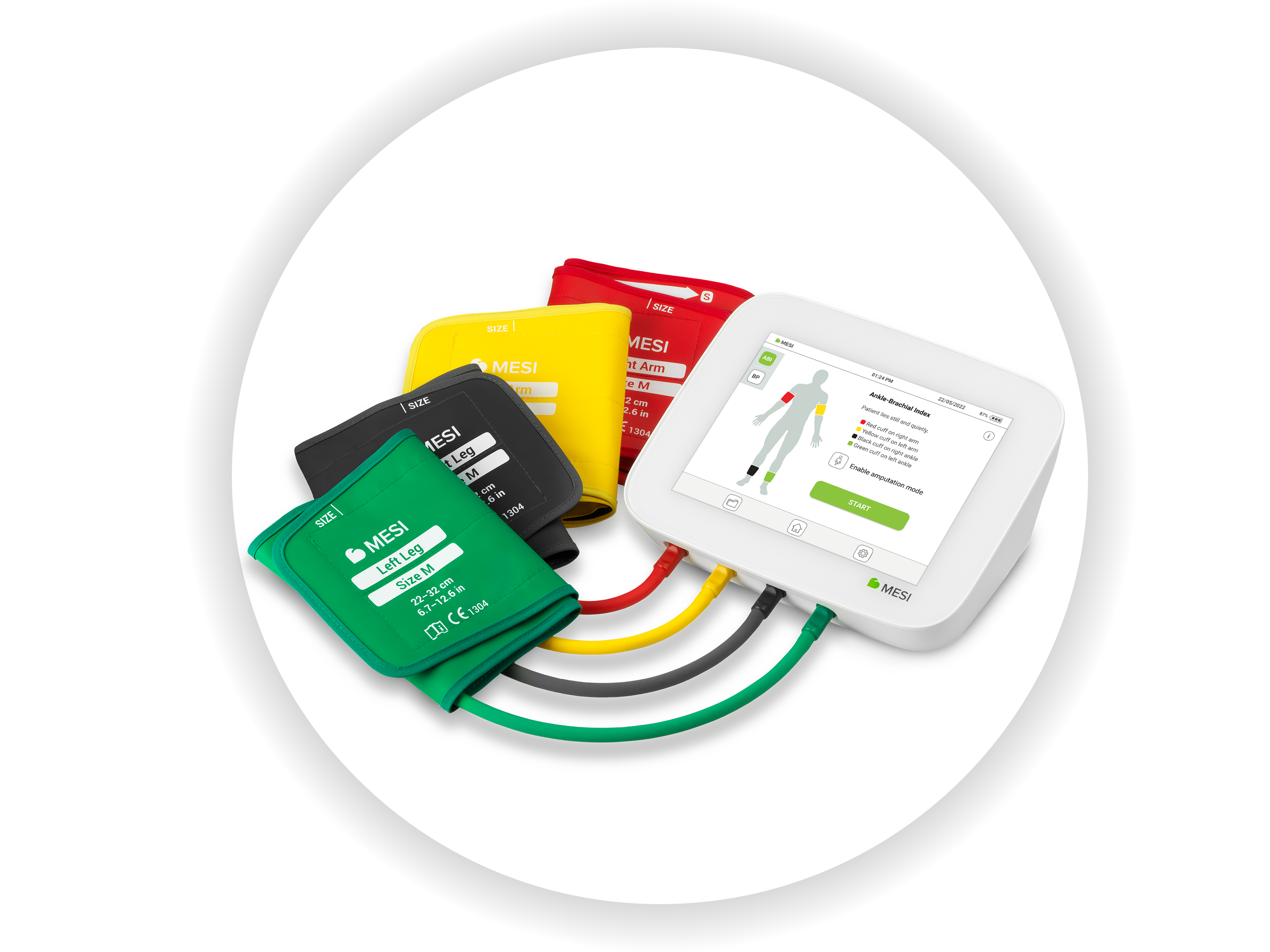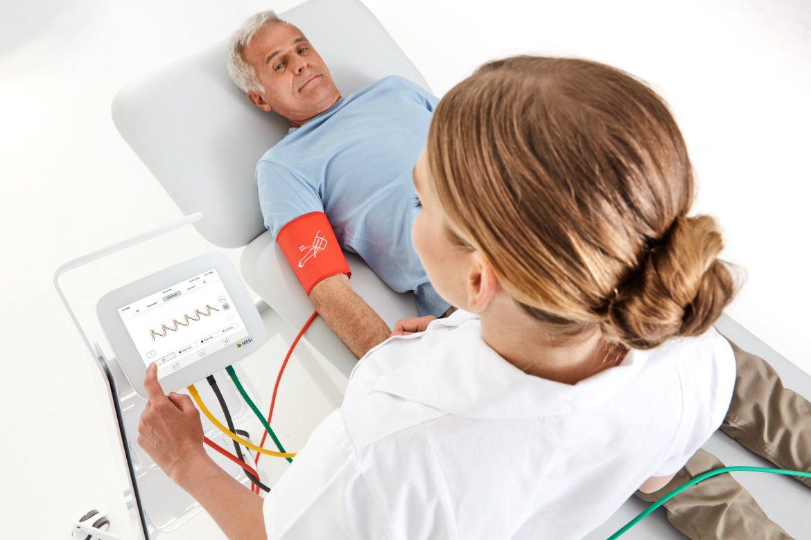 MESI ABPI MD 2 je nová generácia automatického ABI systému, navrhnutá pre ešte plynulejší priebeh vyšetrenia a jasnejšie vyhodnotenie výsledkov. Zjednodušuje skríning periférneho arteriálneho ochorenia (PAD) v každodennej praxi – od nasadenia manžiet až po hotový výsledok bez zbytočných krokov.