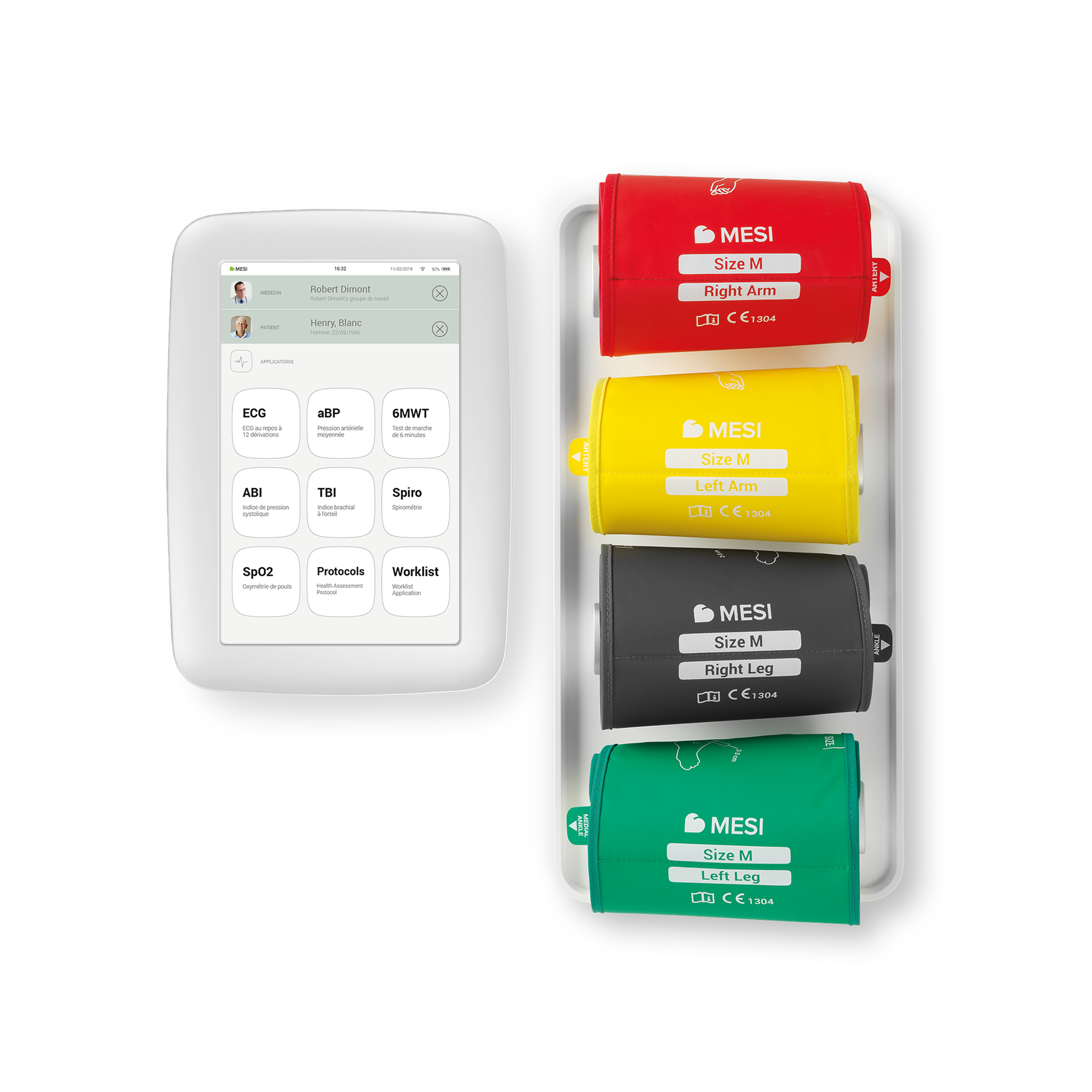 MESI mTABLET je modulárny systém, ktorý sa dá rozšíriť o 12-zvodové digitálne EKG, meranie TK, oxymetriu (SPO2), TBI (palcovo-ramenný index), spirometriu. Meranie tlaku BP, PWV, 6-MWT, Tremo, Vitals